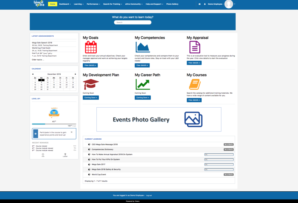In 2014, eXtra Stores recognised a growing need to offer consistent training for store employees in remote locations. Their stores are spread out across the Middle East, which required a lot of travelling, so eXtra Stores decided to upgrade their learning management system from an existing Oracle implementation that wasn’t fit for purpose. Embedding learning into eXtra Stores’ company culture was also a top priority for them. They chose to partner with iLearn ME, who helped them set up Totara Learn.