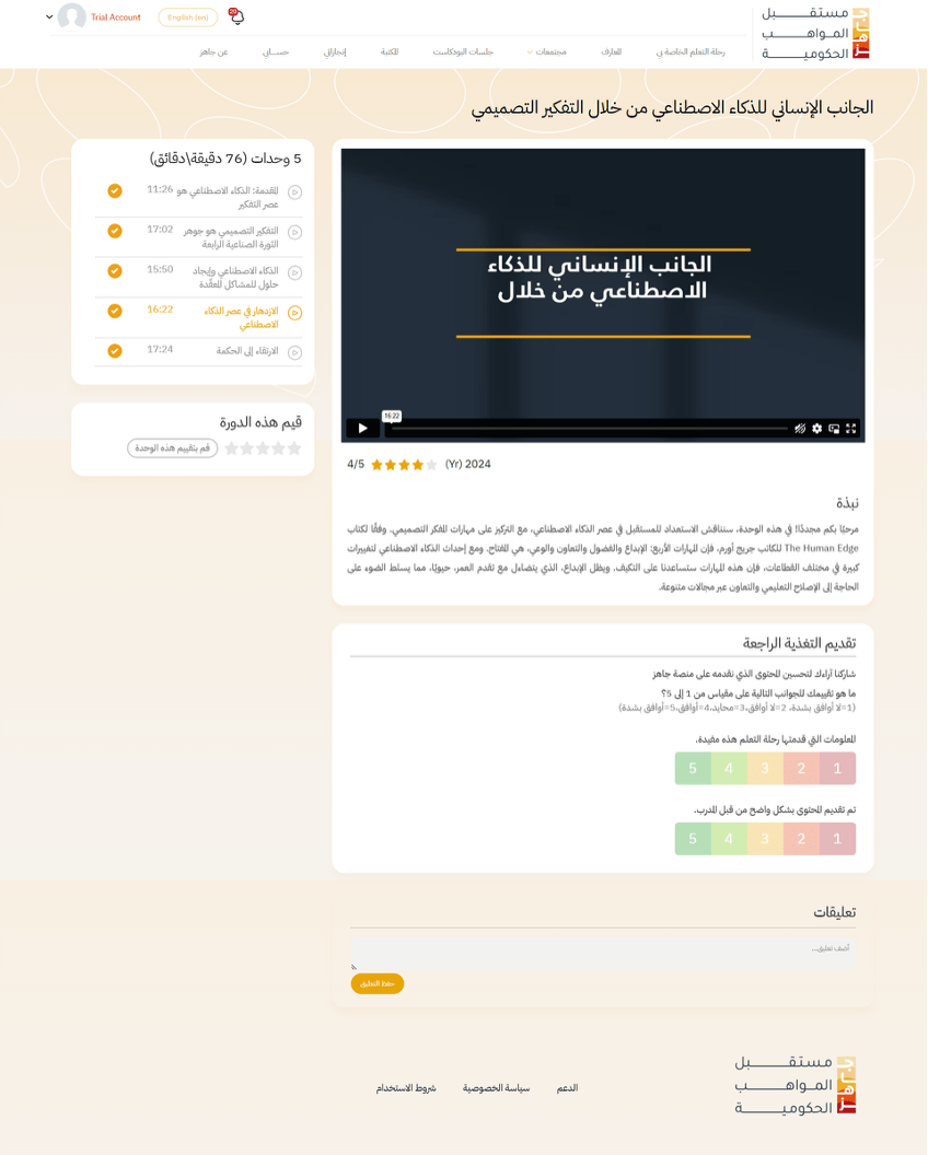 • Strong Industry Collaborations, partnering with 27+ strategic course providers across government and industry leaders, including Microsoft, Accenture, Mindvalley, Dubai Blockchain Center, MOCCAE, MOEI, PWC, SAP, CIPD, and the UAE AI Office, to deliver world-class learning upskilling content.