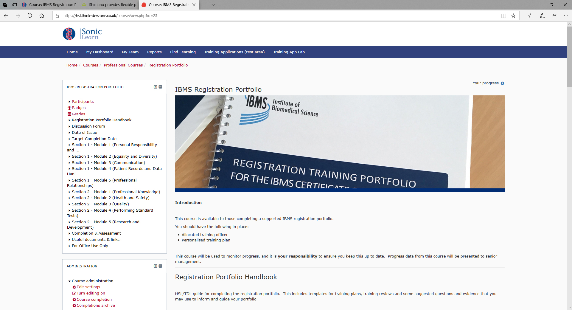 TDL’s solution was to set up the framework of the portfolio as a course on Totara Learn. Each module of the portfolio was set up within the course. Multiple one question quiz activities allowed the trainee to mark when that section of the portfolio has been signed off as complete.