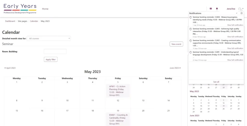 El plazo para la segunda fase del programa era de un curso académico y el objetivo era contratar a 2000 profesionales de la primera infancia. Se ofrecieron seminarios web interactivos en directo para acompañar el aprendizaje electrónico.